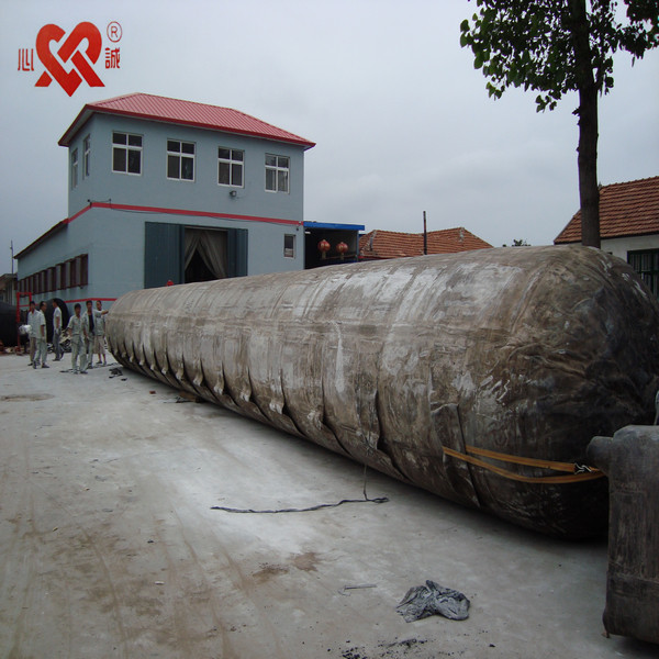 橡膠充氣打撈浮筒在一些大型船舶救助工作中,打撈浮筒通常用于提供浮力以彌補駁船起重機的動力,也可以被捆綁到船舷上或放入船艙用于提供浮力.人們需要控制打撈物(被困船只等)的提升速度,讓氣囊有足夠的時間通過閥門充氣.一般來說,提升速度應控制在1米/分鐘.在一些沉箱下水項目中打撈浮筒已被實踐證明是非常有用的.使用過去下水方式結果水位不夠深入將不得第二次發(fā)射沉箱.有了海上打撈浮筒人們可以添加額外的浮力運作沉箱以確保其安全的到達浮選點.