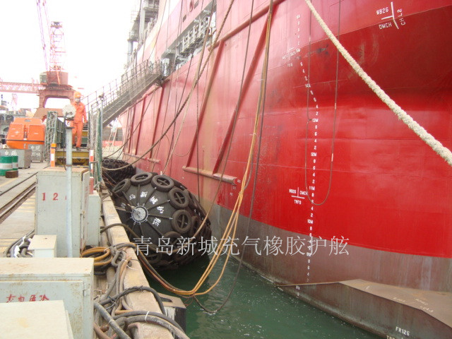 船舶靠球是一種海洋防碰撞裝置.它由合成線繩增強橡膠板制成,內(nèi)有壓縮空氣可漂浮在水面上作為保護性介質(zhì)使用.因此,當過駁作業(yè)和靠系泊作業(yè)時,船用橡膠護舷就作為一個重要的保護介質(zhì)用來防止發(fā)生碰撞.